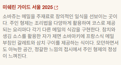 #2. 소바쥬 | 메밀을 활용 다양한 즐거움과 경험 | 미쉐린 가이드 서울 2025