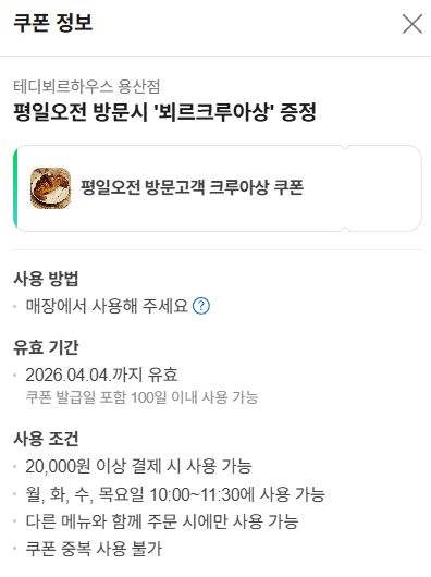 크루아상을 주는 쿠폰을 다운 받을 수 있습니다.