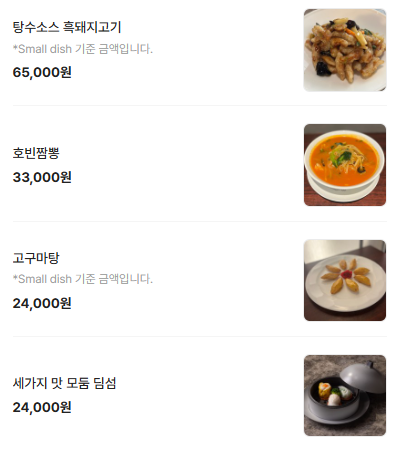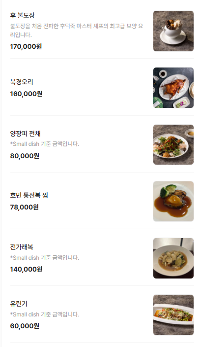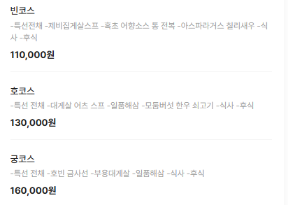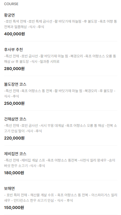 5. 메뉴 | 점심과 저녁 동일가이고 11~40만원 선