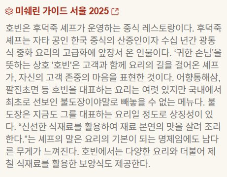 #2. 호빈 | 후덕죽 마스터 셰프의 철학을 담은 정통 중식 보양 요리