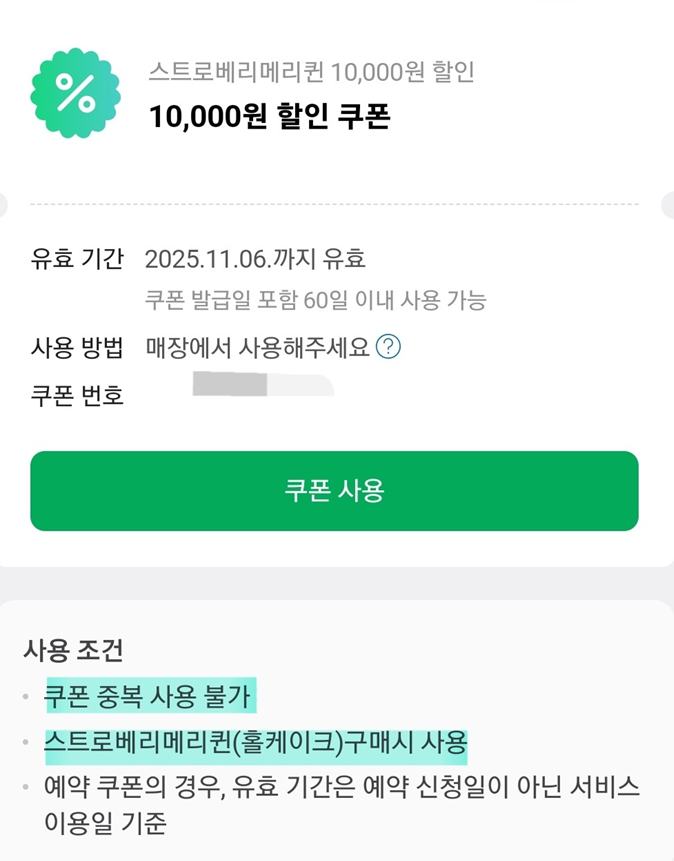 #2. 스트로베리메리퀸 케이크 1만원 할인 쿠폰 + 통신사 할인 받아 구매하기