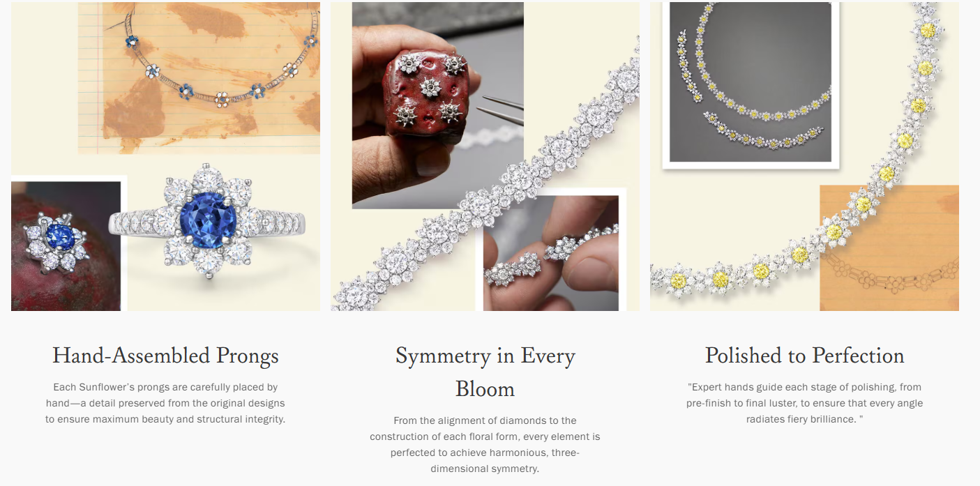 1950년에 발표된 해바라기의 균형미에서 영감을 받은 주얼리 컬렉션입니다. 해바라기의 자연스러운 아름다움과 대칭성을 다이아몬드로 표현한 작품들로 구성되어 있다.