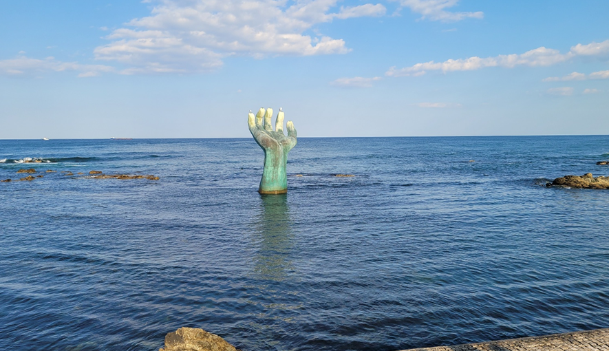 광장에도 손이 있고 바닷가 가운데에도 손이 있습니다