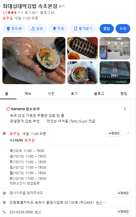 강릉, 속초의 김밥 맛집을 정리해 보았습니다 ^^