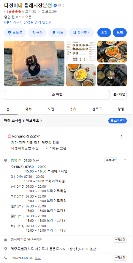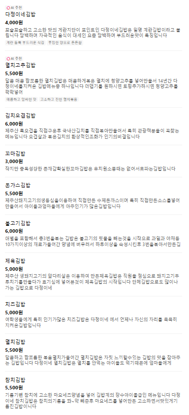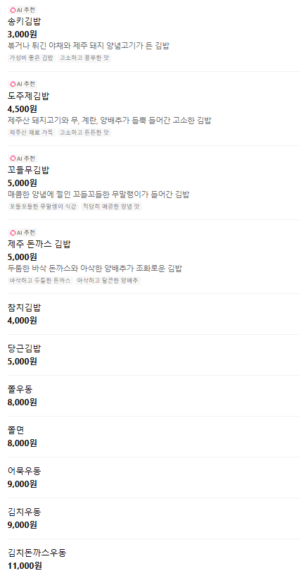 제주의 김밥 맛집을 정리해 보았습니다 ^^