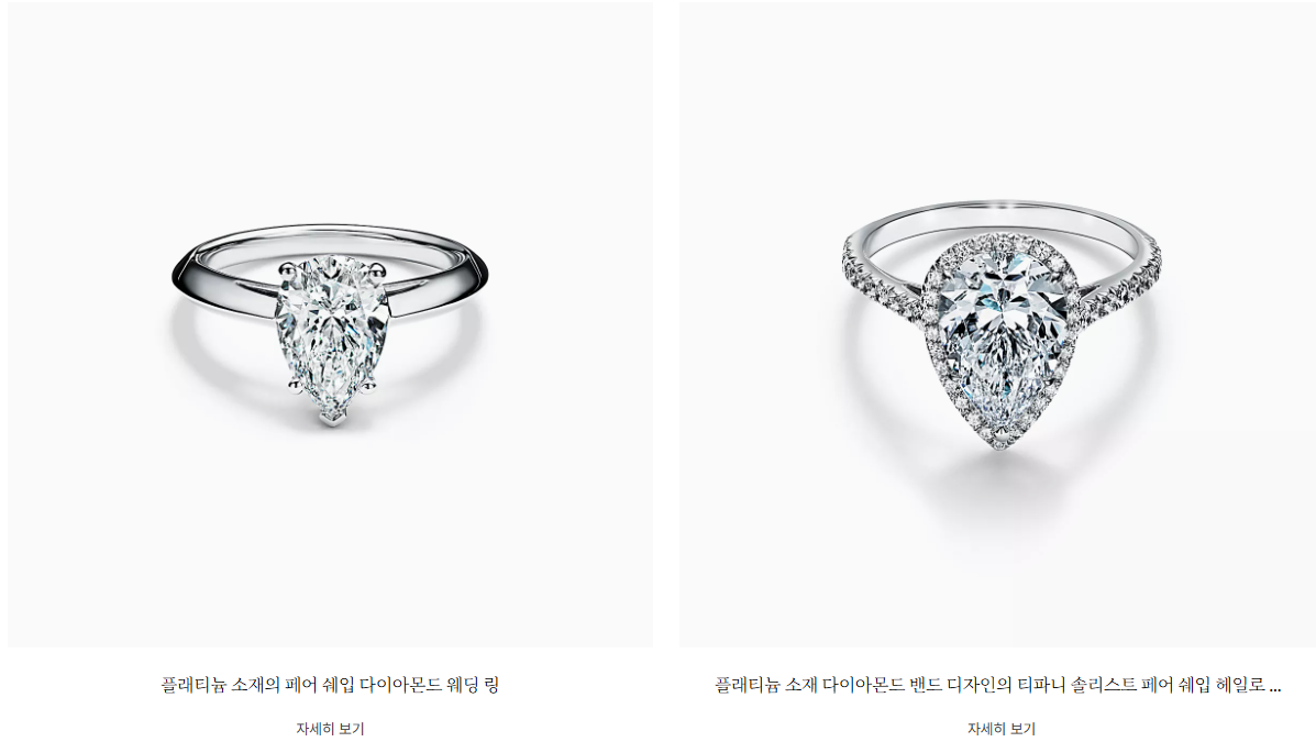 | 에메랄드 컷 | 고전적이고 우아한 분위기로, 세련된 커플들에게 어필. 특히 아르데코 스타일의 반지에 잘 어울림. | 맑고 깊은 광택이 고급스러운 느낌을 줌. |