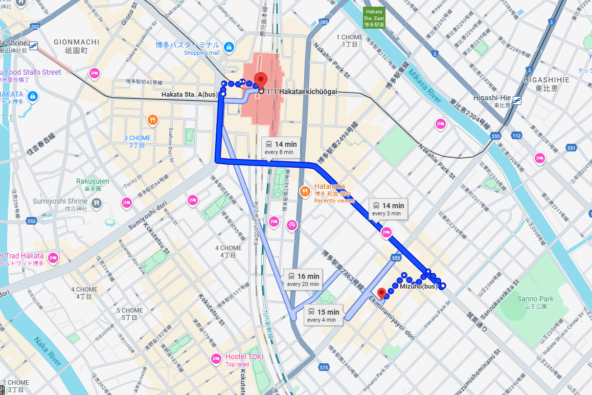 4. Hakata 역에서 버스를 타면 15분이 걸리고