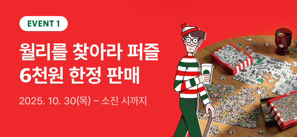 스타벅스에서 월리를 찾아라 크리스마스 프로모션을 진행 중에 있습니다